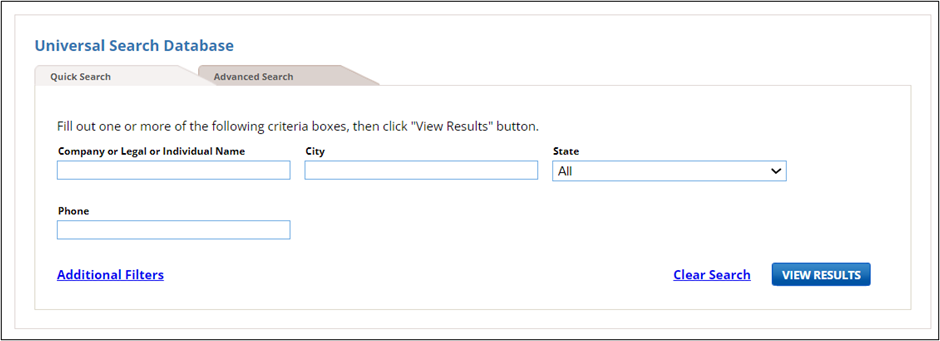 - The Universal Search database provides flexibility to search for businesses and consumers simultaneously